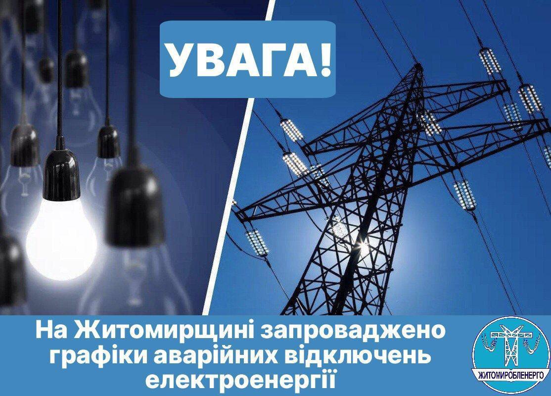 За командою диспетчерського центру НЕК "Укренерго" на Житомирщині введено графіки аварійних відключень (ГАВ).