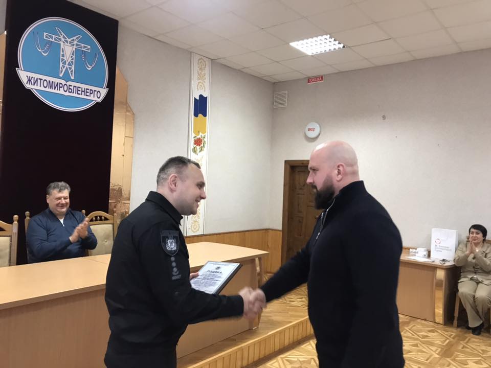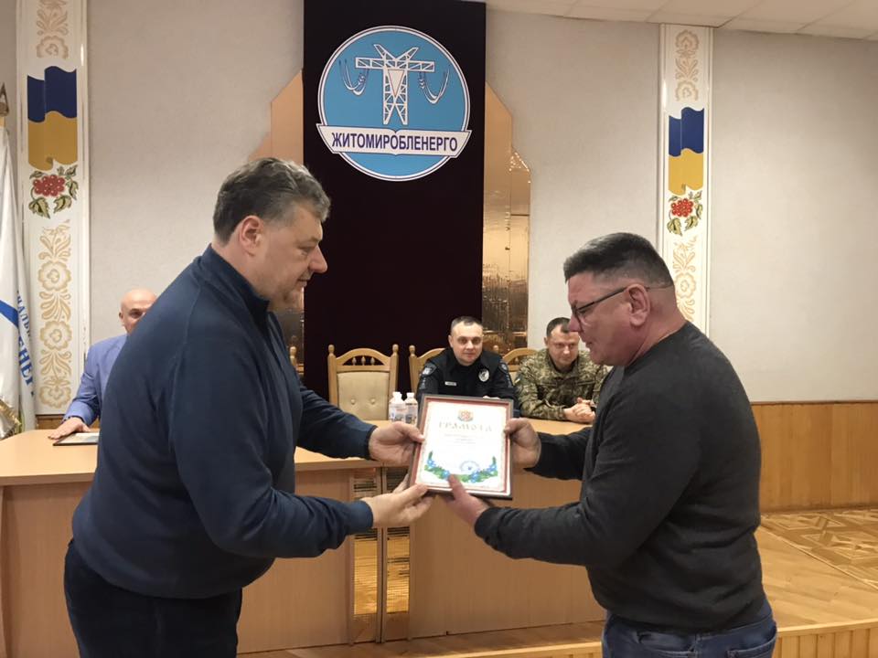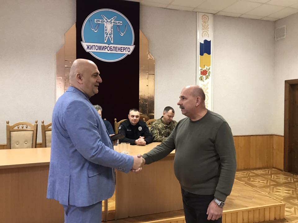 Привітати житомирських енергетиків зі святом та відзначити їх професійні досягнення завітали голова Житомирської обласної військової адміністрації Віталій Бунечко, начальник Головного управління Національної поліції в Житомирській області, полковник поліції Олександр Ковтун, полковник Нацгвардії Олексій Мельник, головний лікар КНП "Житомирська багатопрофільна опорна лікарня" Тарас Собко.