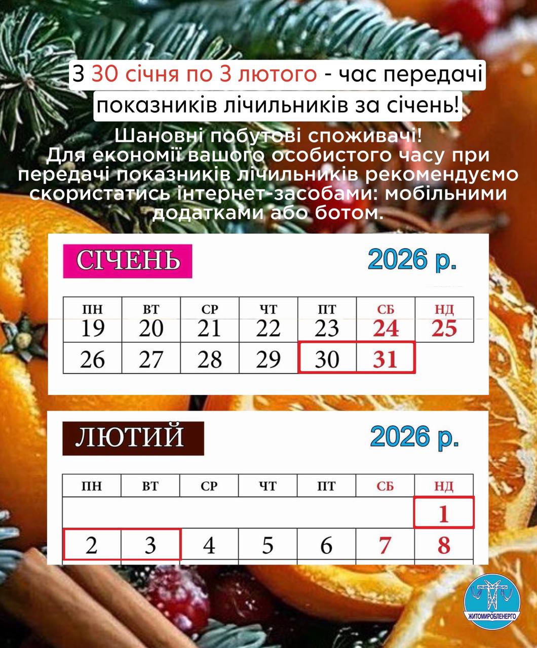 Це можна зробити з 30 січня по 3 лютого включно.