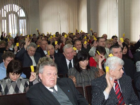 Один із гостей профспілкової конференції – Валерій Валентинович Погорілий, голова Незалежної галузевої професійної спілки енергетиків України – привітав присутніх і докладно розповів про роботу НПЕУ в умовах кризи та про плани організації на майбутнє.