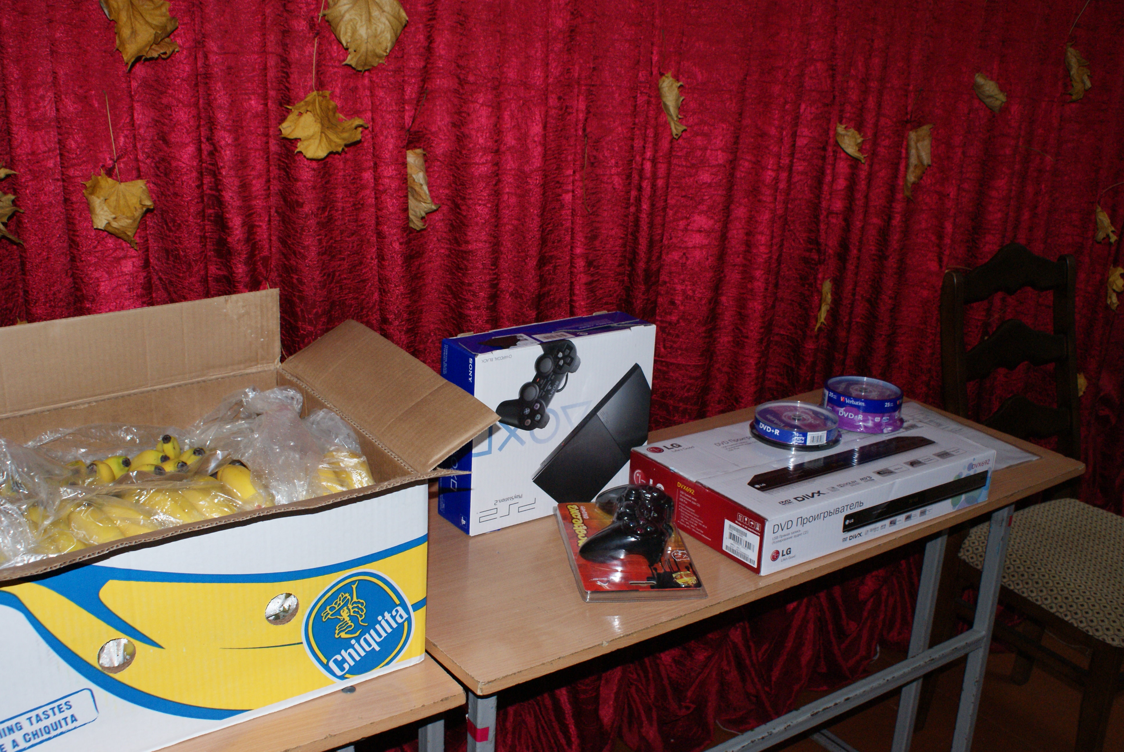 Гості привезли із собою DVD програвач, ігрову приставку та геймпад для того, аби дітки мали змогу трошки пограти та відпочити, розвиваючи уяву та спритність. На солодке - банани.