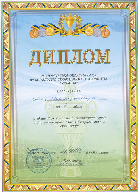 18-19 травня 2012р. у місті Коростені на стадіоні «Спартак» відбулася обласна міжгалузева Спартакіада серед працівників промислових підприємств та організацій.
