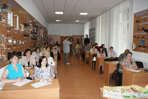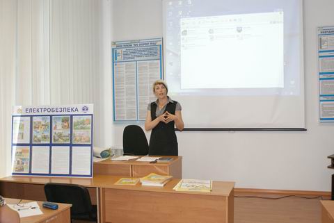 Провідний інженер з охорони праці Коростенського РЕМ Світлана Васильєва за допомогою технічних засобів продемонструвала наявний у Товаристві відіоматеріал з електробезпеки, відповідала на питання вчителів, давала практичні поради щодо проведення уроків з охорони життя.