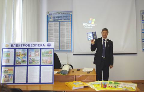 Із змістовною лекцією перед педагогами виступив директор з охорони праці Віталій Дем’янюк, який розповів про вагому роботу ПАТ „ЕК „Житомиробленерго” з профілактики невиробничого електротравматизму серед сторонніх осіб на енергетичному обладнанні ПАТ „ЕК „Житомиробленерго” та електротравматизму серед населення у побуті, ознайомив слухачів із наявними матеріалами для проведення належного навчання школярів основам електробезпеки.