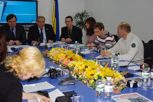 01.02.13 року в конференц-залі Сервісного центру ПАТ «ЕК «Житомиробленерго» відбулася прес-конференція Голови Правління ПАТ «Житомиробленерго» Анатолія Левицького за участю заступника Житомирського міського голови Боровця Миколи Петровича.