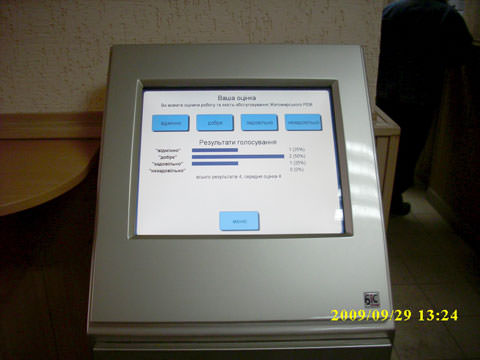 Черговий крок назустріч споживачеві зробило ВАТ “ЕК”Житомиробленерго”. Згідно заходів щодо поліпшення роботи Житомирського РЕМ, на базі діючого інформаційного термінала службою інформаційних технологій розроблена та впроваджена система моніторингу якості обслуговування клієнтів найбільшого підрозділу компанії. Подібна система вже працює в абонентських відділах деяких енергопостачальних компаній, проте ця є більш досконалою та водночас простою в застосуванні. Оцінку визначають відвідувачі в залежності від власних вражень про роботу РЕМ у розділі “Ваша оцінка”, натиснувши відповідну кнопку на екрані інформаційного терміналу: «Відмінно», «Добре», «Задовільно» або «Незадовільно». Результати голосування завжди можна переглянути на моніторі термінала. Цим самим ВАТ “ЕК”Житомиробленерго” переконує клієнта, що його думка має значення та вплив на прийняття рішень щодо створення нових стандартів обслуговування споживачів. При нагоді запрошуємо абонентів оцінити роботу Житомирського РЕМ.