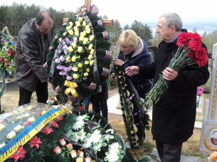 Потім представники ПАТ «ЕК «Житомиробленерго» відвідали місцеве кладовище, де поклали квіти до могили загиблого на Майдані Віктора Прохорчука та вшанували пам’ять громадського активіста хвилиною мовчання.