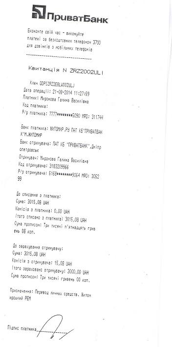 Працівники Житомирського РЕМ ПАТ «ЕК «Житомиробленерго», під керівництвом директора Гуцала А.А. зібрали кошти для допомоги(3000грн) 27-річному українському офіцеру Ярославу Миронову на купівлю протеза . Механізована бригада, де служив Ярослав ,потрапила в оточення терористів в Рубіжному і витримала бій з бойовиками. Рятуючи життя пораненому товаришу, Ярослав був поранений у ногу. На жаль, врятувати ногу Ярославу київським лікарям не вдалося. Зібрані кошти перераховані на картку матері героя Мироновій Г.В.