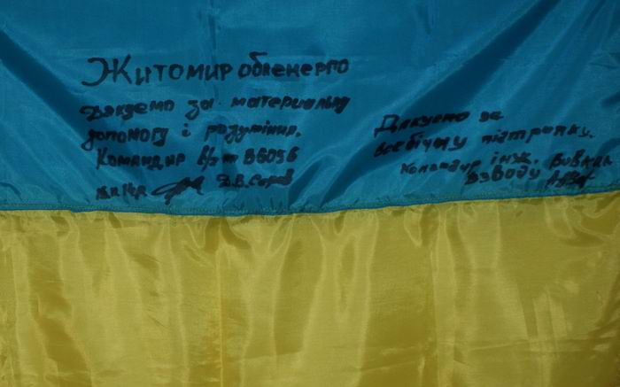 Минулого понеділка,10 листопада 2014 року, керівництво ПАТ «ЕК «Житомиробленерго» передало управлінню зв’язку Житомирської окремої аеромобільної бригади радіостанцію «Моторола» та груповий зарядний пристрій для зарядки портативних радіостанцій,а вже наступного дня, 11 листопада, керівництво енергопостачальної компанії посприяло у тому, аби через волонтерів передати для потреб ще однієї військової частини із Житомирщини вкрай необхідне спорядження та інструмент. Йдеться про допомогу окремій інженерній роті інженерного полку із Новограда-Волинського, яка наразі виконує ряд відповідальних завдань на Луганщині. Зокрема воїнам, які займаються облаштуванням фортифікаційних укріплень, енергетики допомогли із закупівлею бензогенератора, домкрата, сокир, зварювального апарату та наборів інструменту для ремонту автомобільної техніки. Спеціальні ключі для ремонту важкої техніки також допоможуть інженерному підрозділу у найскладніших ситуаціях. Для потреб військових автомобілістів волонтери передадуть і закуплені за кошти енергопостачальної компанії електрофени для розігріву автомобільних двигунів в умовах значного зниження температури повітря. Загалом окрема рота із Новоград-Волинського інженерного полку отримала допомогу від енергетиків Житомирщини на суму біля 20 тисяч гривень.