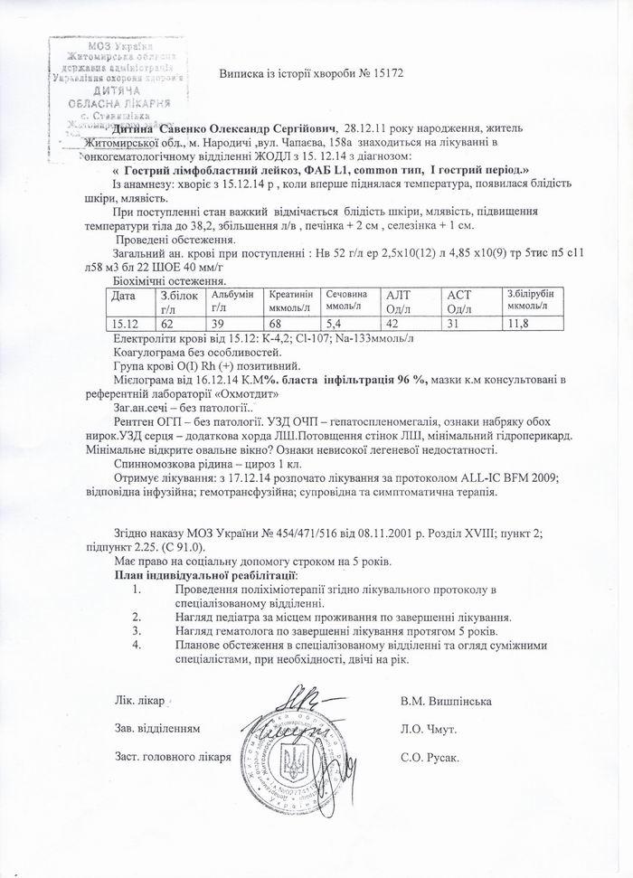 Важко на душі, коли хворіють близькі люди, але ж як же важко сприйняти звістку батькам, про хворобу маленької дитини. Трирічний синочок електромонтера Народицького РЕМ Савенка Сергія Миколайовича наразі бореться за життя. Лікарі встановили діагноз - «гострий лімфобластний лейкоз» (онкозахворювання крові). Хвороба піддається лікуванню, але крім того, що маленькому Сашку доведеться витримати випробування 5-тьма курсами хіміотерапії, необхідні чималі кошти на лікування й реабілітацію. Колектив Народицького РЕМ перший підтримав родину Савенків, але цього, на жаль, не достатньо.